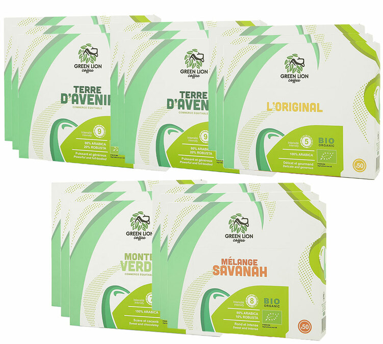 | Pack Découverte Bio 1000 capsules compatibles Nespresso* Pro – GREEN LION COFFEE | |