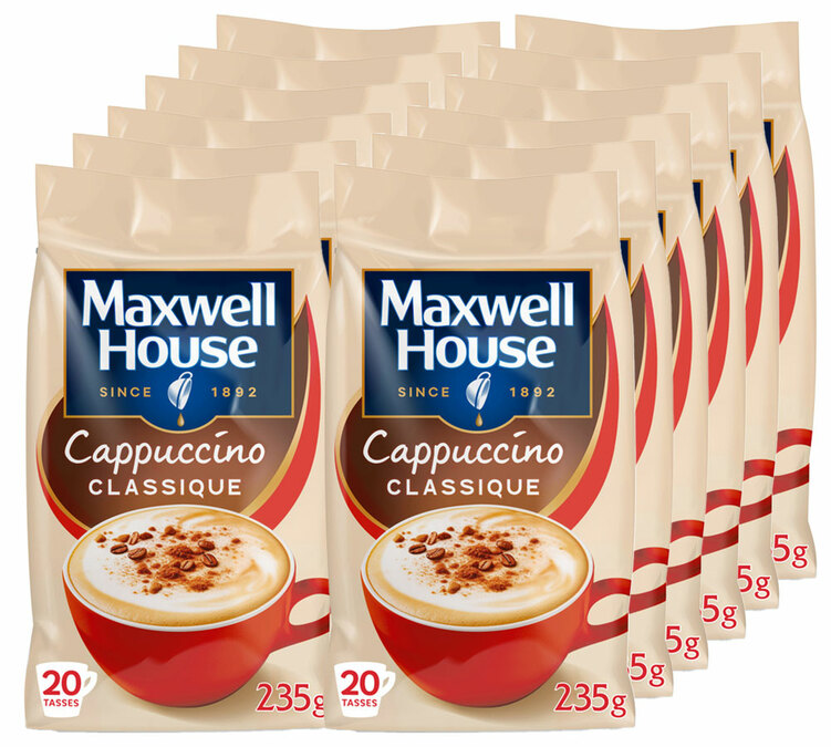 | 12 x 235 g - Café soluble pour professionnels - Cappuccino - MAXWELL HOUSE | |