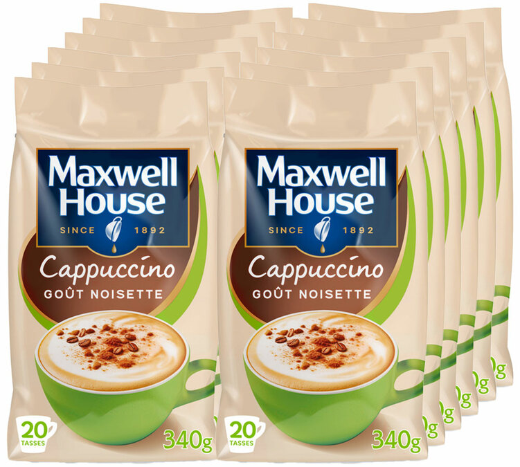 | 12 x 340 g - Café soluble pour professionnels - Cappuccino Noisette - MAXWELL HOUSE | |