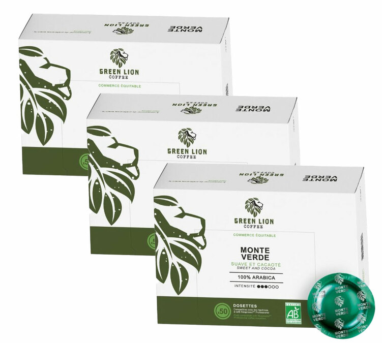 | 150 capsules compatibles Nespresso* Pro Monte Verde Bio Commerce Equitable – GREEN LION COFFEE | |