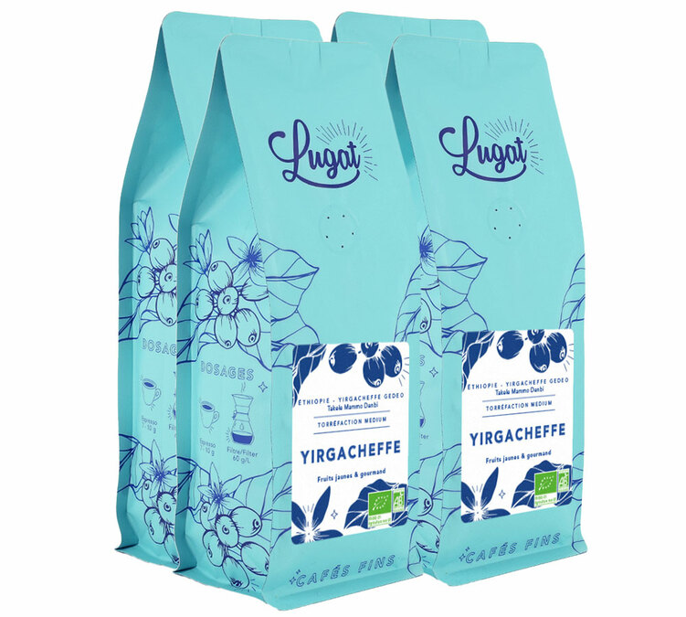| 1kg - Café en grain Bio pour professionnels Ethiopie Yirgacheffe - Lugat | |