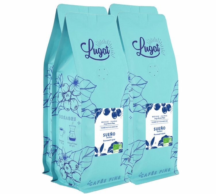 | 1kg - Café en grain pour professionnels Bio Mexique Sueño - Décaféiné à l'eau - Lugat | |