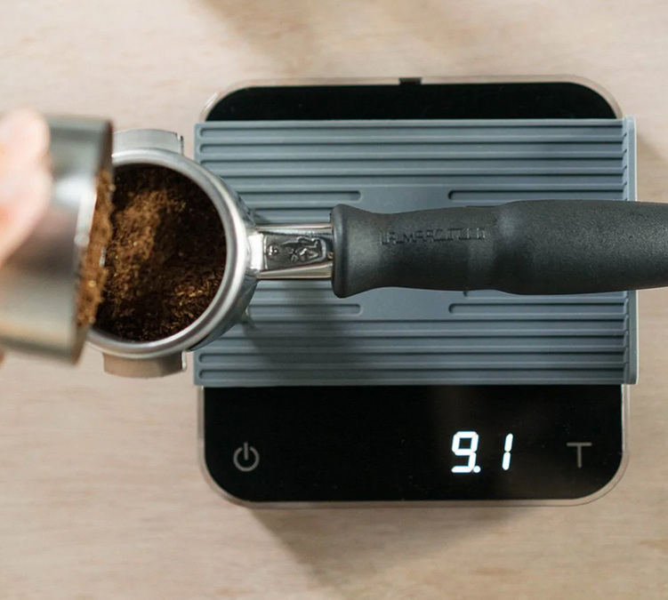 - Mode Porte-filtre pour simplifier le pesage du café moulu dans un porte-filtre.