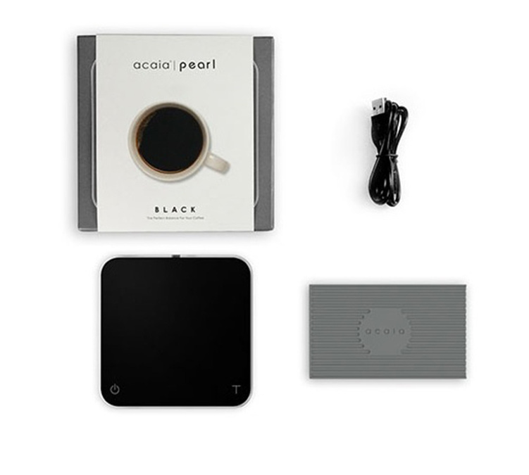 La balance ACAIA Pearl noire est livrée avec 1 tapis en silicone résistant à la chaleur, 1 câble de charge USB Type-C.