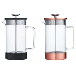 La cafetière à piston Core Coffee Press de Barista & Co est un charmant petit modèle de cafetière manuelle. Elle possède un double système de filtration, ce qui garantit un fini propre en tasse. Son pichet et sa poignée sont en verre borosiliate. Son couvercle, son piston et sa base amovible sont en acier inoxydable. Tous ses éléments peuvent être mis au lave-vaisselle. Sa contenance de 35 cl en fait la meilleure alliée de ceux qui ne veulent pas perdre de place dans leur cuisine.