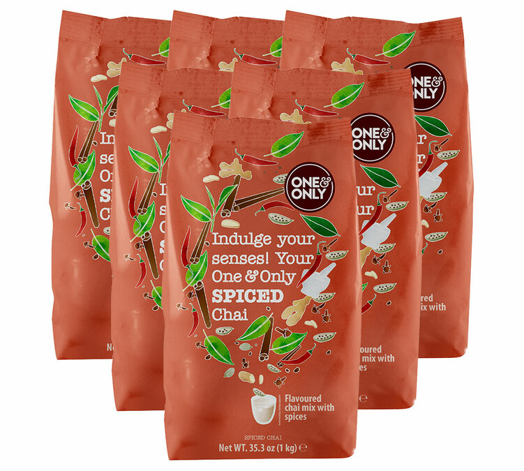 Réalisez un délicieux Spiced Chai grâce à la préparation en poudre One and Only. La préparation est à mélanger avec du lait et selon votre envie avec des glaçons. Les préparations One and Only sont garanties sans OGM et sans gluten. Avec ce lot réalisez jusqu'à environ 138 boissons de 33 cl. Conditionnement 6 x 1 kilo.