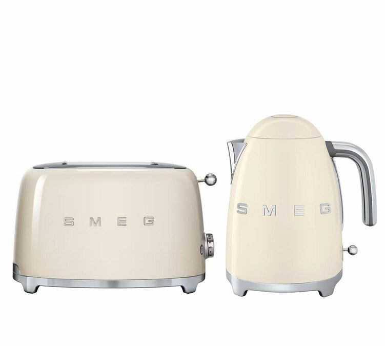 Quand le design rencontre la gourmandise, le résultat a un nom : SMEG. Ce set petit-déjeuner crème réunit deux icônes de la marque italienne, la bouilloire KLF03CREU et le grille-pain TSF01CREU, dans une harmonie parfaite de douceur, de rondeur et de raffinement. Leur teinte crème lumineuse évoque les cuisines des années 50, revisitées avec un charme contemporain irrésistible.