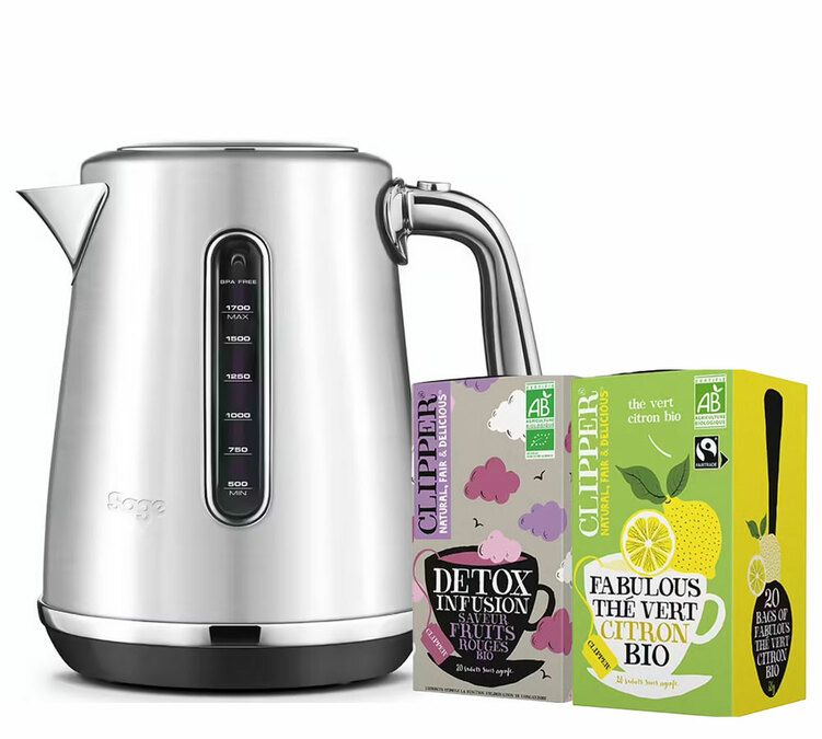 Découvrez la nouvelle gamme de bouilloire de luxe de la marque Sage : la Soft Top et sa bouilloire acier SKE735BSS4EEU1. Ses jolies courbes sont élégantes au design rétro et aux touches lumineuses. Recevez du thé offert par MaxiCoffee pour l'achat de cet appareil !