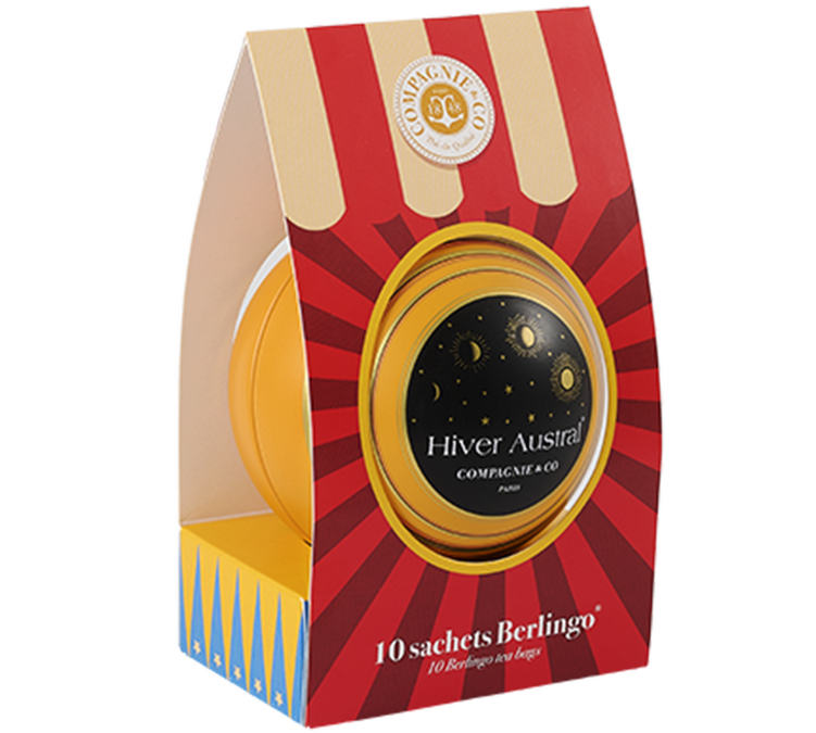 Comme tous les thés en sachet de Compagnie and Co, Hiver Austral est conditionné dans des Berlingos dont la forme pyramidale et la texture proche de la soie permettent de laisser plus d'espace aux plantes et libérer toutes leurs saveurs.