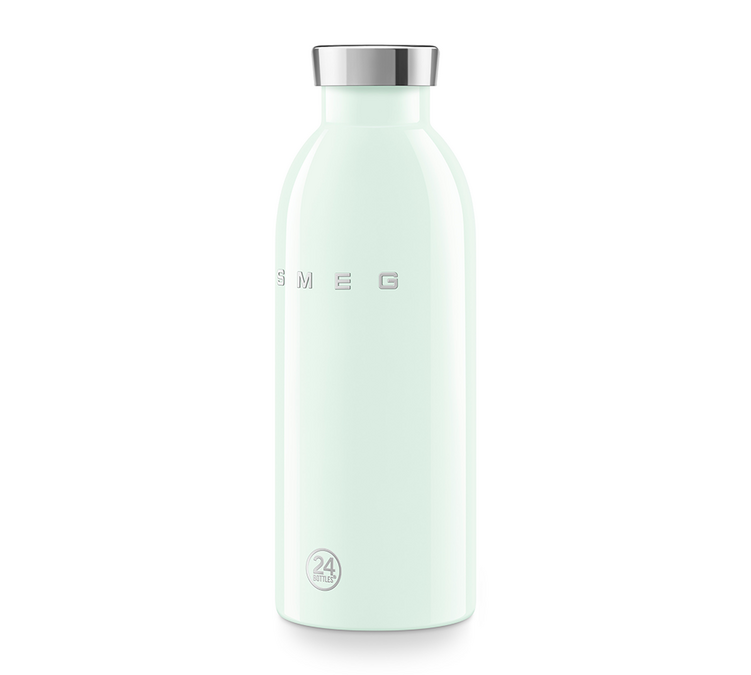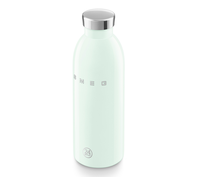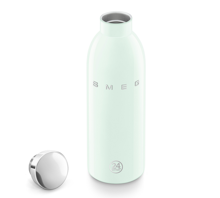 Smeg et 24 bottles s'associent pour une collection de bouteilles isothermes "années 50". Ce modèle vert d'eau combine efficacité thermique, résistance et raffinement. Il vous accompagnera dans toutes vos activités, tout en apportant une note de sophistication à vos habitudes d’hydratation.