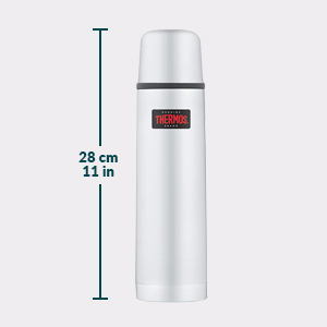 Découvrez la bouteille isotherme inox Thermos Light & Compact. Contenance 75 cl. Ultra-légère. Technologie brevetée Thermax d’isolation sous-vide. Longue durée : 24h au chaud / 24h au froid. Garanti sans BPA. Couvercle 100% hermétique avec bouton-poussoir.
