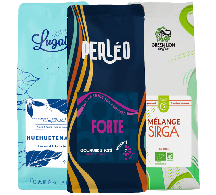 Cet assortiment renferme 750 g de cafés en grain soigneusement sélectionnés, issus de terroirs variés et torréfiés en France par nos experts pour garantir fraîcheur, qualité et intensité aromatique.