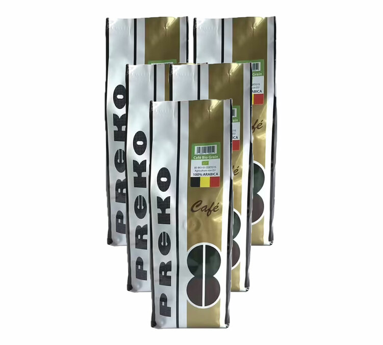 Idéal pour un usage professionnel, ce café en grains BIO du torréfacteur belge Préko est légèrement corsé aux notes fruitées. À servir dans un restaurant, coffee shop, bar et même en salle de pause dans vos locaux ! 5 Paquets de 1kg.