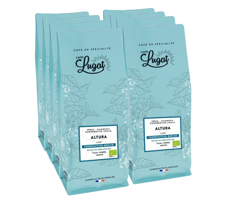 - Ce café en grains issu de l'agriculture biologique est un mélange intense d'arabica et de robusta. Sa torréfaction "robe de moine" offre des notes subtiles de fruits jaunes et de chocolat noir, avec une pointe légèrement boisée qui procure une longueur en bouche persistante, le tout avec un corps dense. Conditionnement : 30x9kg