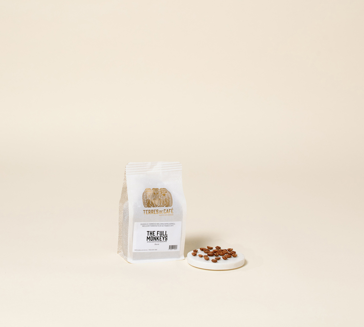 Ce café résulte de l'assemblage de plusieurs grains arabica soigneusement sélectionnés par Christophe Servell, fondateur de Terres de Café et Meilleur Torréfacteur de France en 2015. Après des voyages au Brésil, en Éthiopie et au Guatemala, il a créé, à son retour en France, ce blend premium : The Full Monkeys.