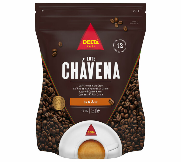 Découvrez le café en grains Chavena de la marque Delta Cafés. Le paquet contient 250g de ce café intense torréfié au Portugal.