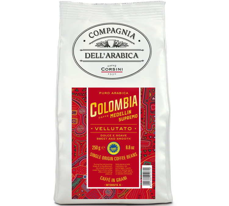 Caffè Corsini Coffee Beans Colombia Medellin Supremo offers a light taste, sweet and mild with a medium acidity. It has notes of walnut and is easy to digest. The sweet aroma of this coffee offers a sweet treat, especially during breaks mid-morning or afternoon. 250g coffee beans