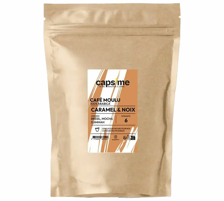 Abordez votre pause-café avec plus de légèreté, grâce au café moulu Caps me décliné en café aromatisé. Le café moulu aromatisé Le caramel et noix, se glisse dans les capsules compatibles Nespresso ® rechargeables adaptées à votre machine Nespresso ® et vous garantit toujours de plus de cafés réussis et moins de déchets au quotidien.