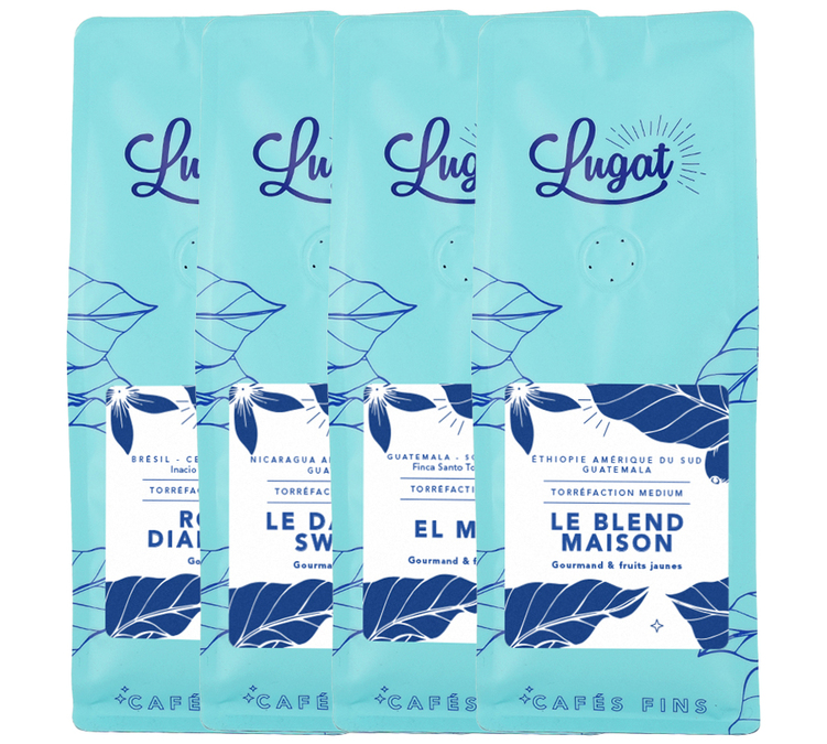 Lugat a été créée et imaginée par les équipes de torréfaction de MaxiCoffee. La vie est trop courte pour ne pas vouloir le meilleur… Y compris dans votre tasse !Chez Lugat, c’est notre conviction et c'est pourquoi nous avons décidé de ne proposer que des cafés fins. Parce que le café, c’est une histoire de goût avant tout, nous souhaitons rendre les cafés de spécialité accessibles à tous, sans jamais renier notre savoir-faire, gage de fraîcheur, de qualité et de précision de torréfaction.