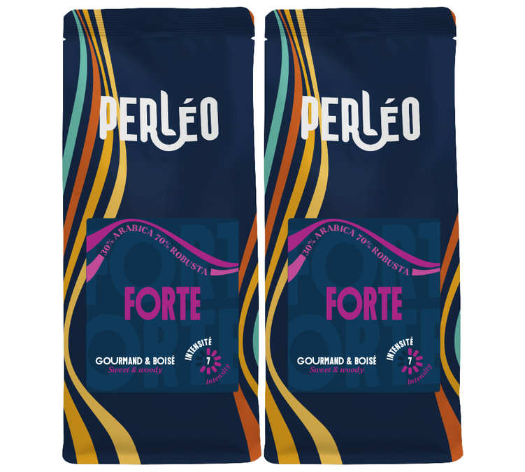 Plongez dans l’univers du café Perléo avec le pack Forte 2 x 250g. Un assemblage audacieux, composé à 70?% de robusta et 30% d’arabica, qui révèle toute sa force à travers une torréfaction poussée. En résulte une tasse puissante, aux notes de noix, de mélasse et de cacao. Que vous le prépariez en espresso, en ristretto ou en boisson lactée, vous apprécierez sa texture onctueuse, sa créma généreuse et sa belle longueur en bouche.