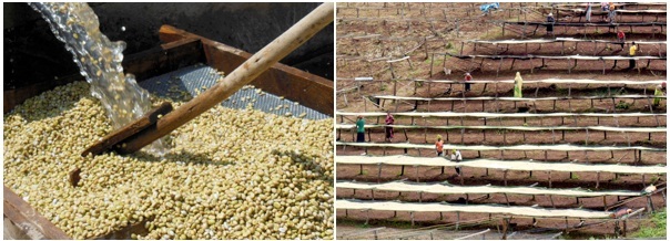 80% des cafés sont des cafés dits "naturels" car ils sont traités par voie sèche et le restant, soit 20% des cafés, sont dits "lavés".