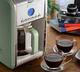 L'Ariete Vintage porte bien son nom. On peut pas faire plus retro. Sous son look, se cache une cafetière programmable avec une douchette de diffusion d'eau chaude et un booster d'arômes électronique. Son filtre corbeille en forme de cupcake offre un café avec plus de corps. Petit bémol sur la mono-résistance qui est pardonnée avec la présence du timer.