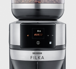 La Severin FILKA brille également par sa simplicité d’utilisation. Son nouvel écran tactile LED intuitif, associé à un tutoriel de démarrage, rend la machine accessible même pour ceux qui ne sont pas habitués aux cafetières automatiques. Ce nouvel écran est équipé du "digital color touch display" qui permet une navigation intuitive dans les menus, une communication claire et précise des étapes d'utilisation et d'accéder rapidement aux commandes les plus importantes. Vous pouvez personnaliser facilement votre café selon vos préférences, ajuster la température, la mouture, la quantité ou encore programmer le maintien au chaud selon vos besoins. L'écran vous permet aussi de choisir de passer du café en grain au café moulu et vous rappelle même quand il est temps de la nettoyer.
