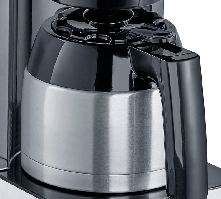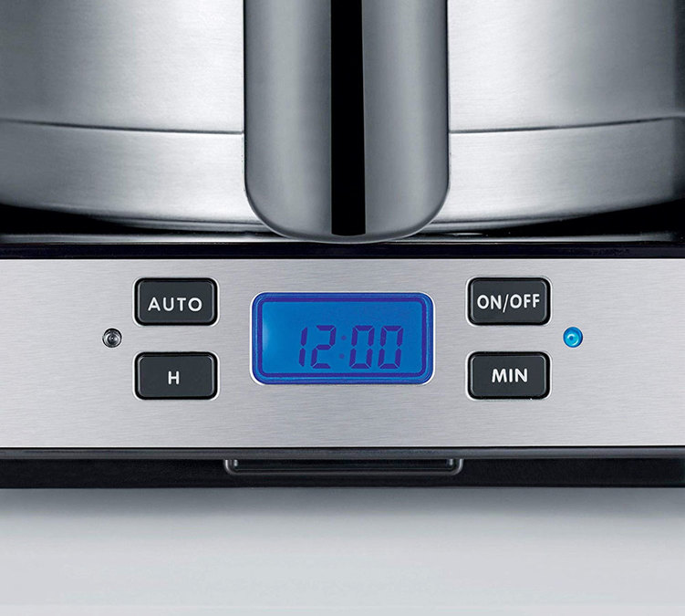 La cafetière vous donne la possibilité de choisir l'heure à laquelle vous voulez que le café commence à être préparé. Grâce à la carafe isotherme, celui-ci restera chaud pour une durée prolongée par rapport à une carafe en verre, vous pourrez donc le boire ultérieurement sans qu'il ne soit froid. Ou vous pouvez le consommer dès les premières minutes grâce au système anti-goutte, qui permet de se servir pendant la préparation.