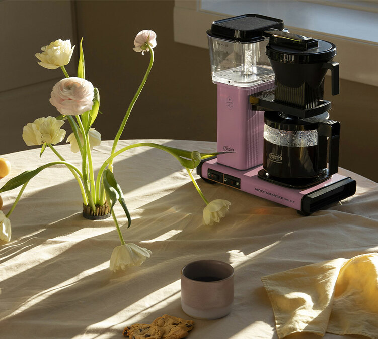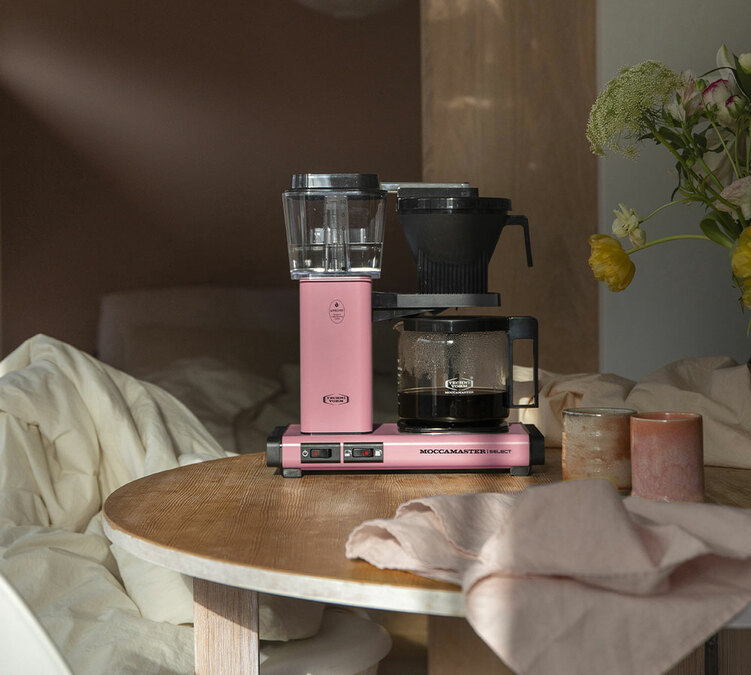 La version rose de la cafetière Select apporte de la lumière, de la personnalité et de la douceur à votre quotidien. Mais sous cette robe se cache une machine solide et durable, entièrement fabriquée à la main aux Pays-Bas. Chaque exemplaire est minutieusement testé avant de quitter l’atelier.