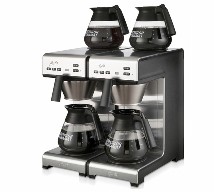 La Bravilor Bonamat Matic Twin est une cafetière filtre professionnelle dotée d'une alimentation au réseau d'eau pour un remplissage automatique. Les deux stations de café sont indépendantes. Inclus : 4 verseuses de 1,7 L. 4 plaques chauffantes. 3 touches de sélection directe. Idéale pour les salles de pause, salles de réunion, Hôtels-Restaurants... Pour du libre-service ou derrière un comptoir. Facile d'utilisation et d'entretien. Garantie 1 an. Livraison gratuite.