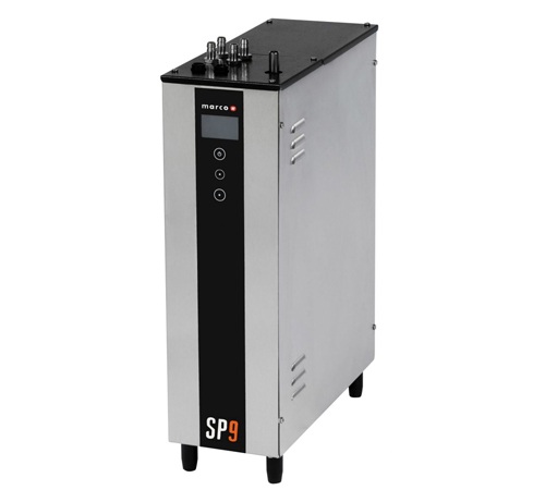 La Marco SP9 est raccordée au réseau d'eau par le biais d'une chaudière (sous le plan de travail). Avec son design moderne et compact, elle s'encastre et s'adapte facilement sur votre plan de travail.