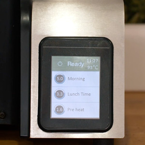 L'interface tactile de la Marco JET 6 TWIN est très simple d'utilisation . Elle affiche toutes les étapes de préparation. Vous pouvez programmer 3 recettes de cafés différents en contrôlant la quantité (2 à 12 L), la température, le débit d'eau, la quantité de café moulu, le ratio café/eau. Idéal pour préparer la quantité nécessaire en fonction du moment de la journée.