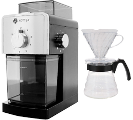 Vous pouvez retrouver le Kit V60 qui vous permet de réaliser une extraction selon votre convenance, en faisant ressortir tous les arômes du café ! Les amateurs d 'extraction douce vont être ravis !