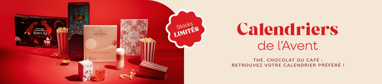Nous avons sélectionné les plus grandes marques, retrouvez Dammann Frères et leur décor de forêts hivernales. Compagnie Coloniale propose un séduisant Casse-noisette habillé de 24 petites boîtes qui renferment leur recette. Dans la gamme bio, vous trouverez les meilleurs calendriers comme le Pukka , English Tea Shop et Kusmi Tea . Le calendrier le plus original est celui de LaGrange , il propose du thé en vrac avec 24 surprises dans des petits pots.