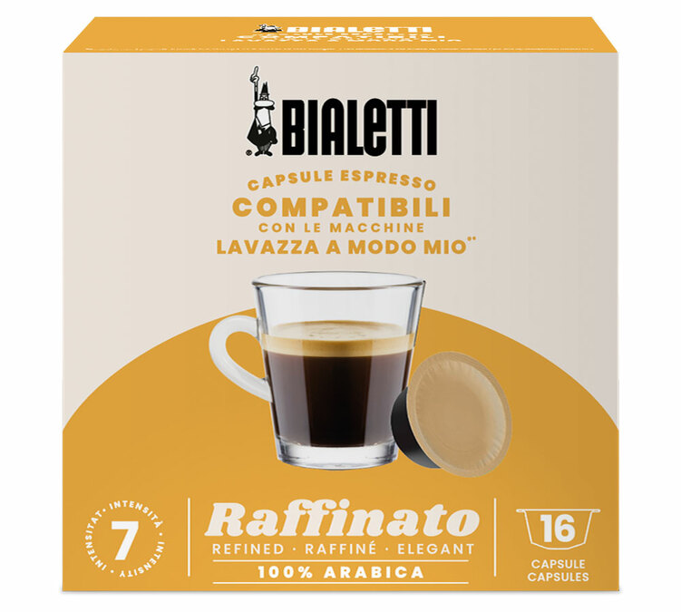 Prêt à tester un nouveau café en capsule Lavazza A modo mio compatible ? Sautez le pas et faites confiance au torréfacteur italien Bialetti et son café Raffinato ! Un café italien fait à partir d'une sélection de grains 100% arabica, originaires d'Amérique centrale et du Sud, et jouissant du savoir-faire de la marque en matière de torréfaction.