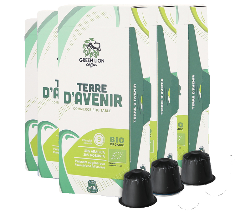 | 50 capsules compatibles Nespresso* Original Terre d'avenir bio ( Commerce Équitable ) - GREEN LION COFFEE | |