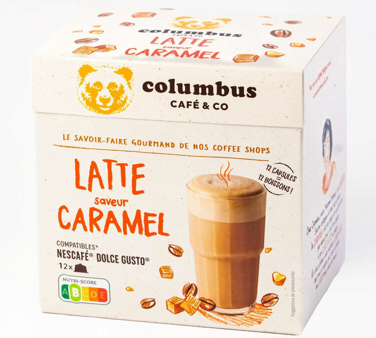 Les 12 Capsules compatibles Nescafé* Dolce Gusto* Latte Caramel reprennent l’une des boissons iconiques de Columbus Café.