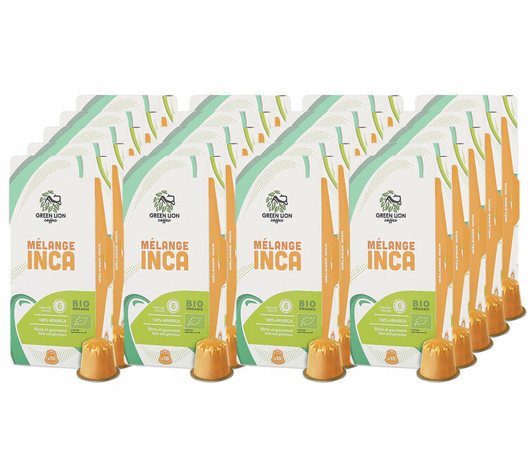 | 200 capsules compatibles Nespresso* Original Le Mélange Inca bio pour professionnels - GREEN LION COFFEE | |