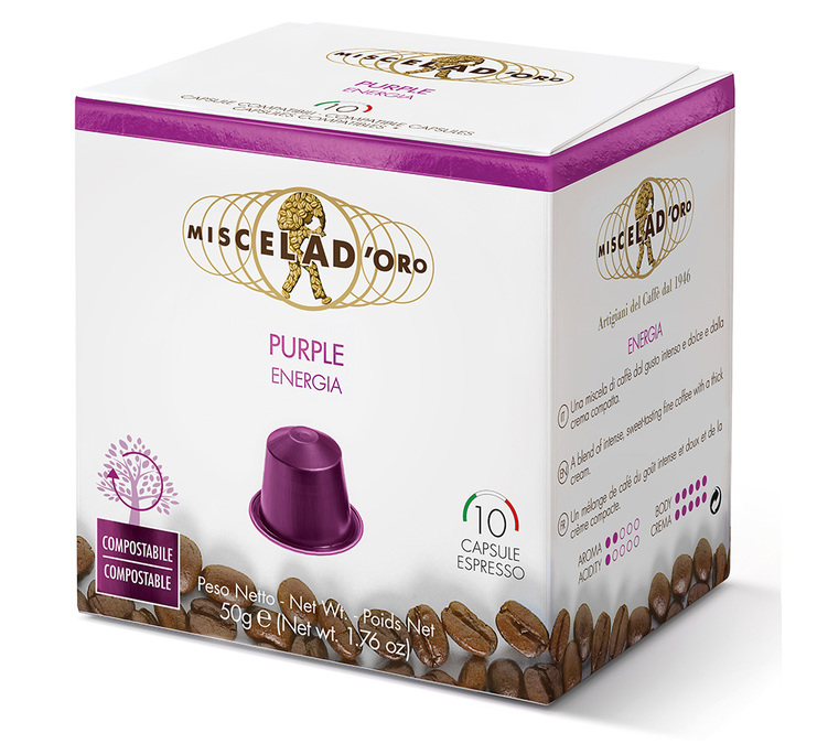 ItalyThese compostable capsules for Nespresso* Original Bio Purple Energia from the Italian roaster Miscela d'Oro have a full body that will satisfy the taste buds of strong coffee lovers ... !It is an organic and Fair Trade product that respects the planet's resources and the work of small farmers, so that coffee breaks are a pleasure for the taste and a joy for the spirit!
