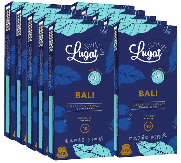 Offrez le meilleur à vos clients et vos collaborateurs en choisissant ces capsules Bali compatibles Nespresso* Original. Ce café de spécialité signé Lugat est originaire de Bali, île située au Sud de l'Indonésie. Il se compose des variétés botaniques suivants : Caturra rouge, Hybride du timor, Line S, Typica. Chaque grain de café a été récolté à la main, dans les plantations de 900 à 1100m d'altitude. Il a été ensuite torréfié par nos torréfacteurs en France.