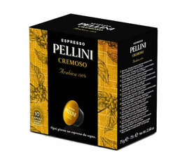 Avec les capsules compatibles Nescafé* Dolce Gusto* Pellini Cremoso, dégustez un café corsé composé de 100% Arabica. Cet expresso Cremoso au corps rond vous offrira un véritable expresso à l'italienne. Conditionnement : boîte de 10 capsules.