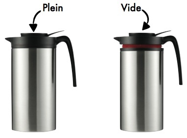 Cette carafe Spirit est dotée d'un système intelligent, lorsque la carafe est vide, le couvercle se relève et une bande rouge apparait comme vous pouvez le voir ci-dessous :