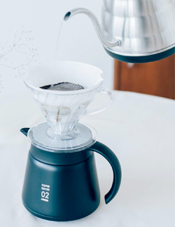 La carafe isotherme V60 de Hario 75cl est équipée d'une double paroi sous vide en inox haute qualité, pour une excellente conservation au chaud (90 minutes).