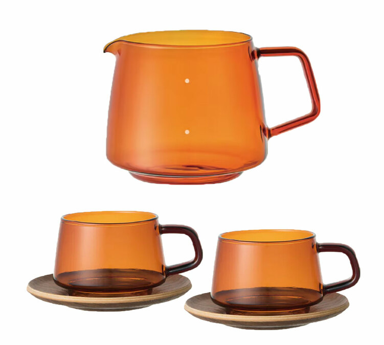 | Carafe + Lot de 2 Tasses et sous tasses pour professionnels - KINTO - 27 cl Ambre | |