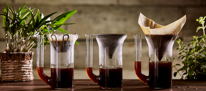 Cette carafe au design digne des Erlenmeyer et tube à essai de laboratoire vous permet de d'utiliser différents types de filtre papier pour varier les plaisirs.