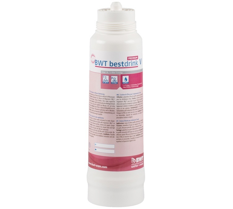 La cartouche filtrante professionnelle BWT Bestdrink Premium V est la solution de filtration optimisée pour l'eau froide. Ajoute du magnésium pour une qualité incomparable dans votre fontaine à eau. Capacité moyenne de 5000 L*. Installation facile horizontal ou verticale.
