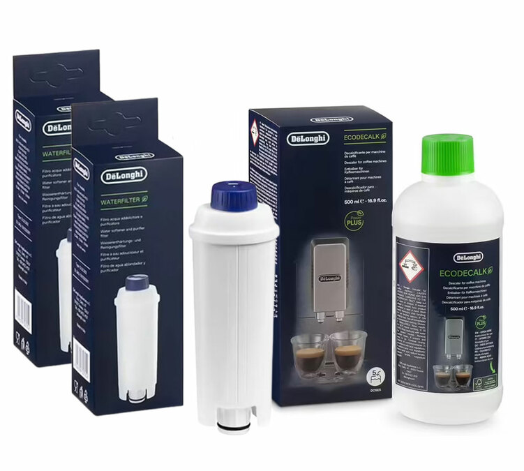 | Pack Entretien DELONGHI - 2 cartouches filtrantes DLSC002 + Détartrant DLSC500 | |