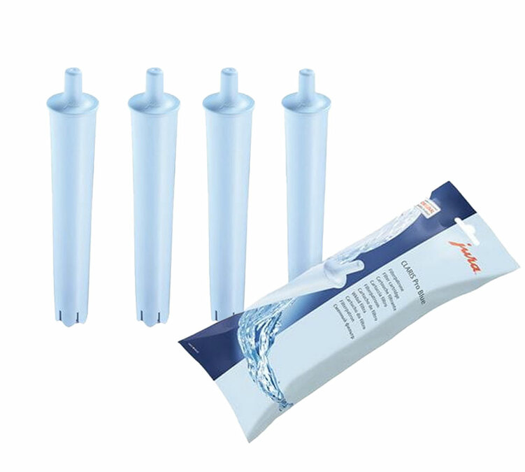 Ce lot de 4 cartouches filtrantes Jura Claris Pro Blue vous permettra d'éliminer le calcaire et les impuretés présentes dans l'eau. Cela vous garantit un café sans goût dénaturé et un prolongement de la durée de vie de votre machine Jura.