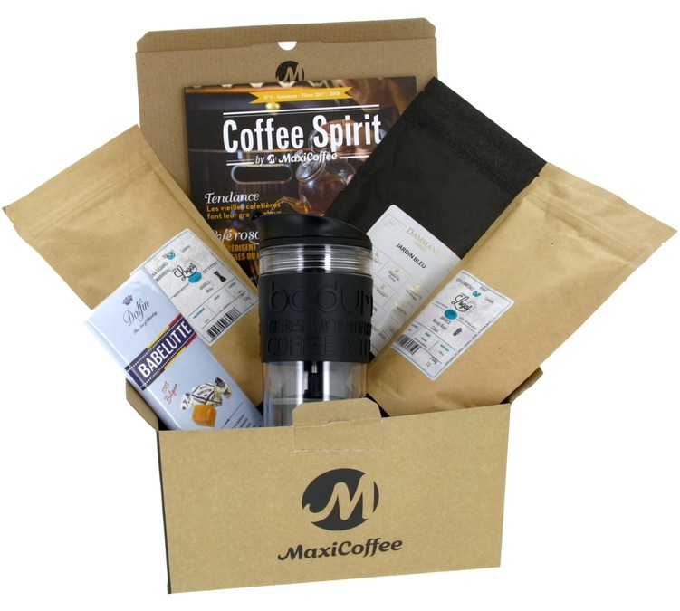 Nos experts cafés ont confectionné pour vous ce superbe coffret café comprenant une Travel Press Bodum 35cl, 2 x 250gr de café fraîchement torréfié et moulu par nos amis Cafés Lugat, 1 paquet de 100g thé noir Jardin Bleu et notre magazine Coffee Spirit. Une belle idée cadeau. Le tout en Livraison gratuite.