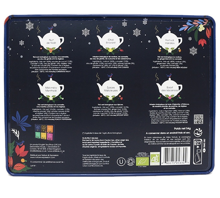 This blue metal box with its magical illustrations evoking the Christmas period is a great gift idea. You will please someone who loves tea with original notes.